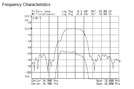 Insertion attenuation 37.40 MHz | 11.5 | 13.5 | 15.5 | dB |