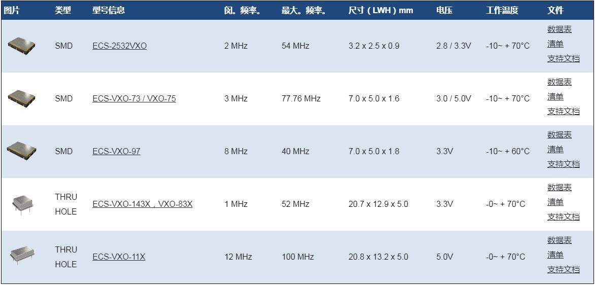 更多>>ECS品牌的VCXO壓控晶振料號有哪些?