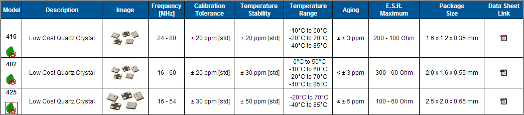 晶振規格參數 | 型號425 | |