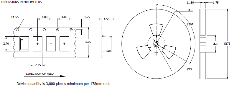 回流條件下,按JEDEC j - std - 020 | +255°C ±5℃ maximum, 10 Seconds maximum |