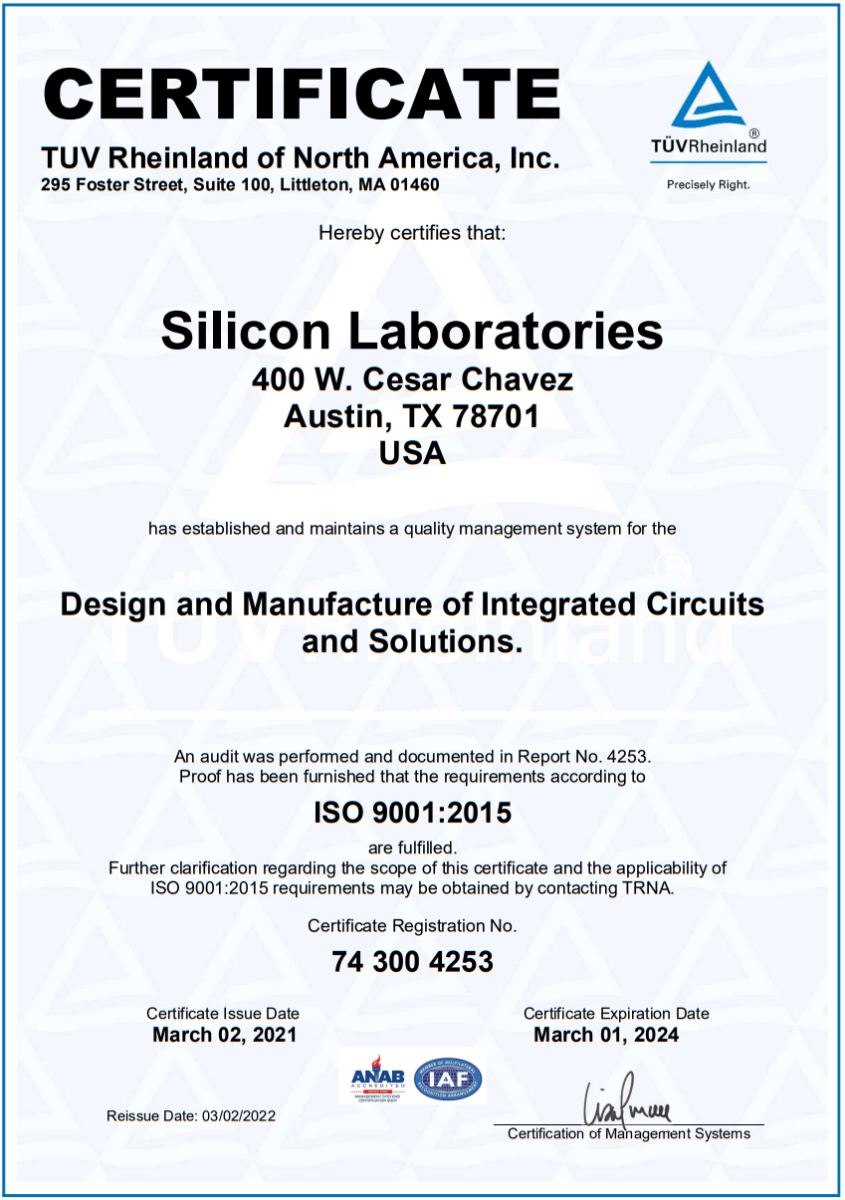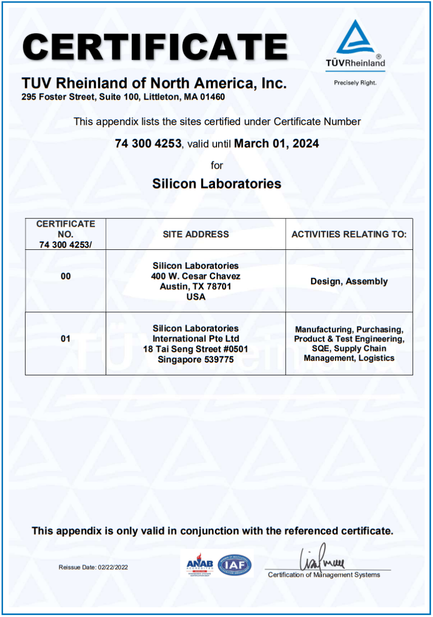 要求卓越的質(zhì)量的Silicon晶振通過(guò)ISO9001認(rèn)證標(biāo)準(zhǔn),可持續(xù)發(fā)展是Silicon晶振一切工作不可或缺的一部分,努力減少資源使用,減少生產(chǎn)過(guò)程對(duì)環(huán)境的影響,并提供符合環(huán)境法規(guī)和要求的產(chǎn)品。Silicon晶振要求卓越的質(zhì)量和環(huán)境管理體系,每個(gè)體系都分別通過(guò)了認(rèn)證ISO 9001:2015 認(rèn)證標(biāo)準(zhǔn)。Silicon Labs是EPA綠色電力合作伙伴,致力于在可用的情況下增加對(duì)可再生能源的使用。Silicon采用積極主動(dòng)的計(jì)劃來(lái)減少辦公室用水量,并采取措施提高回收和電子處置選項(xiàng)的可用性,從而提高我們的轉(zhuǎn)化率。