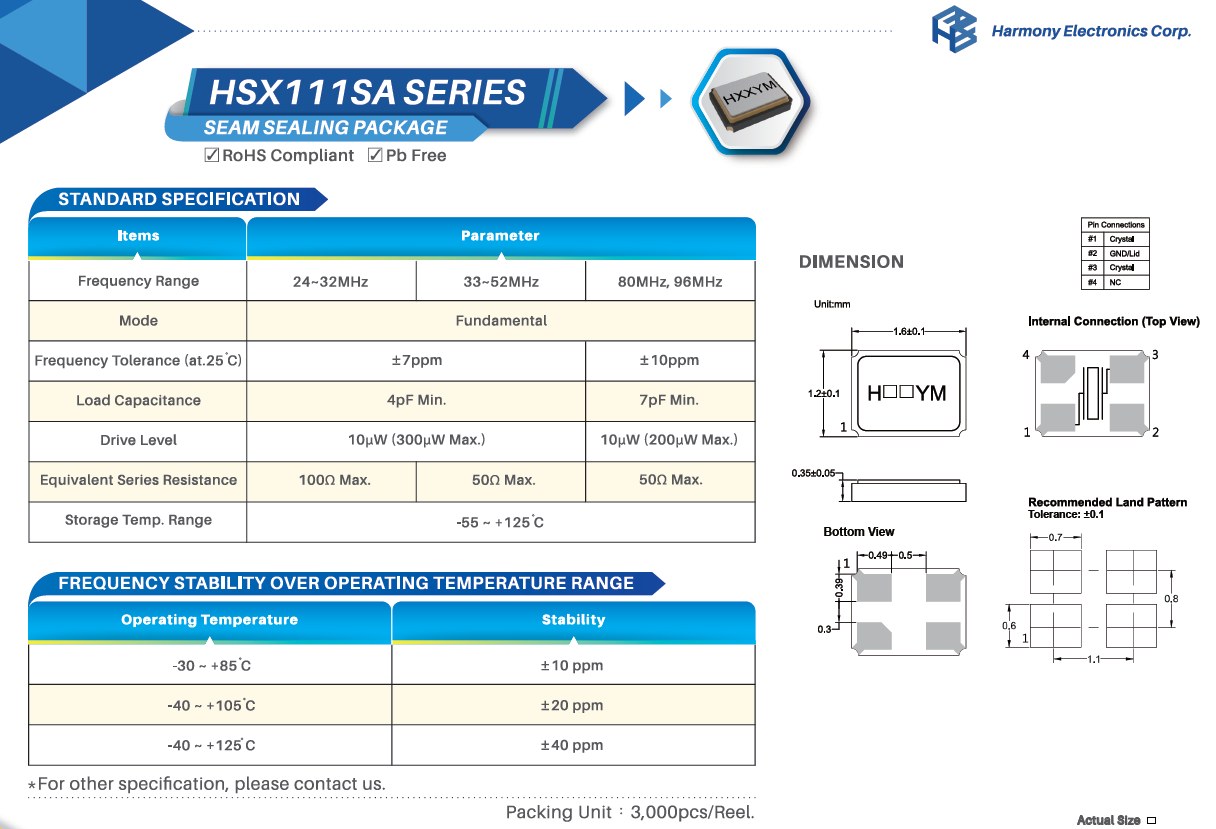 X1C032000B81H-HU | 加高晶振 | HSX111SA | 32 MHz | ±10ppm | 8pF |