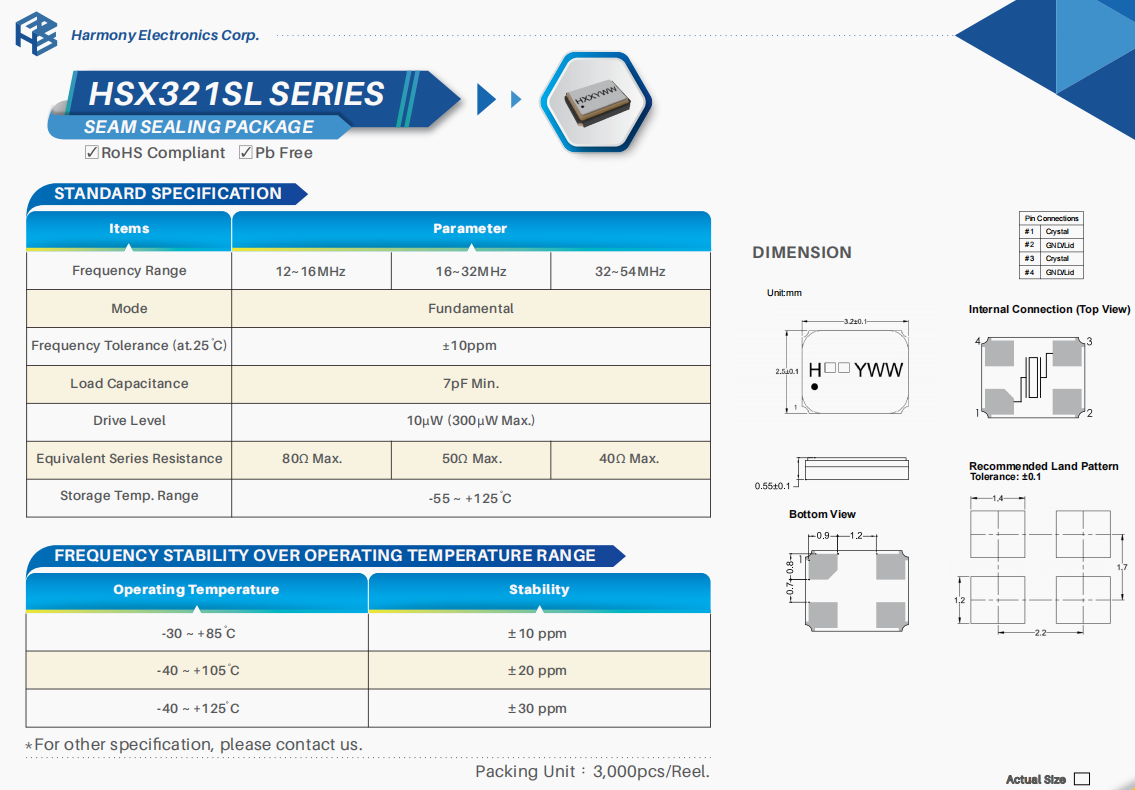X3S010000BK1H-X | 加高晶振 | HSX321S | 10 MHz | ±30ppm | 20pF |